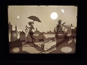 Cette technique ne nécessite pas beaucoup de matériel: un scalpel, du papier, un modèle et une bonne dose de persévérance. Mon index droit s’est endurci sous la pression de la lame et mes yeux ont été mis à rude épreuve, les découpes sont parfois tellement précises qu’il me fallait quasi une loupe pour bien voir ce que je faisais.