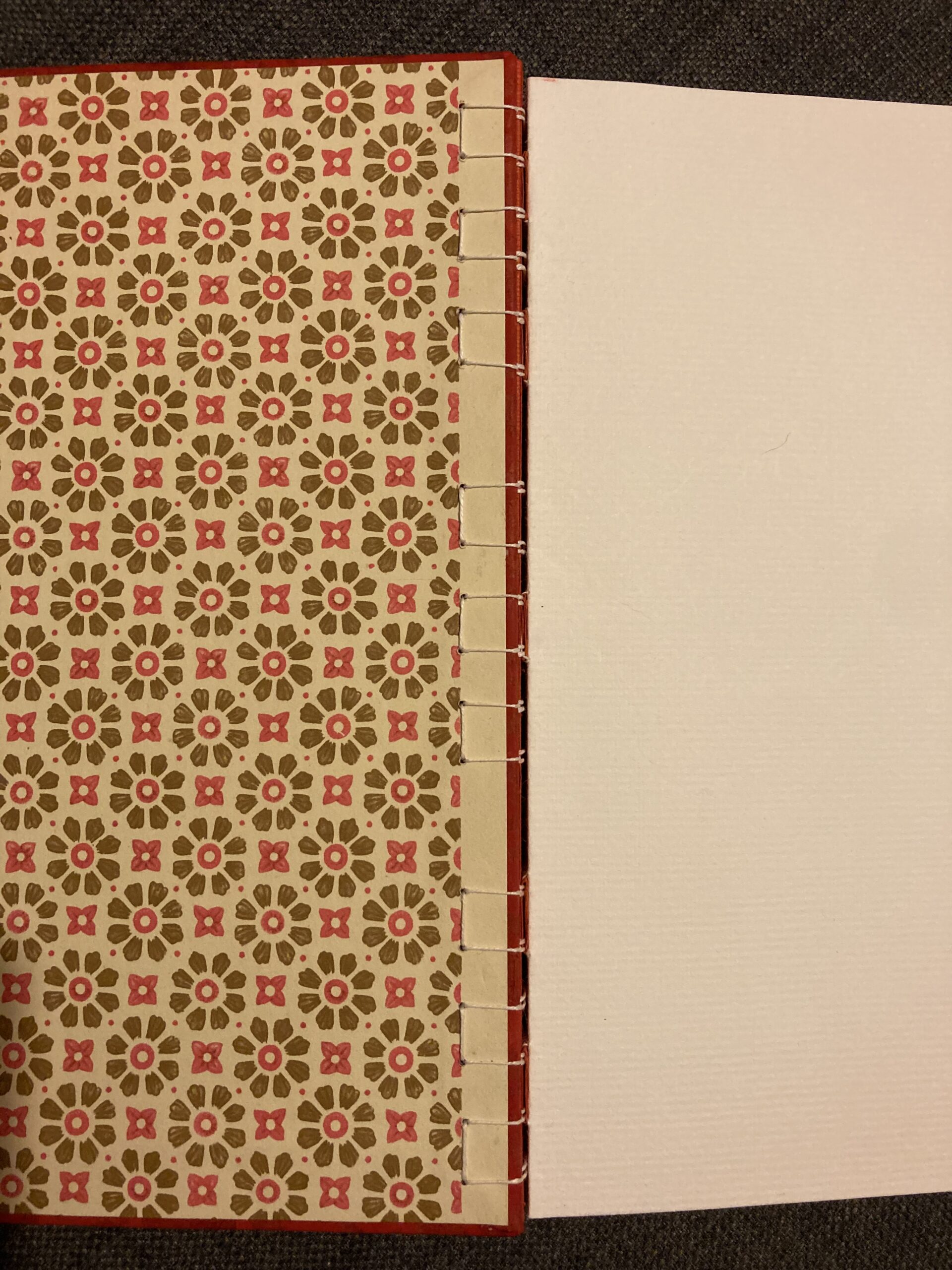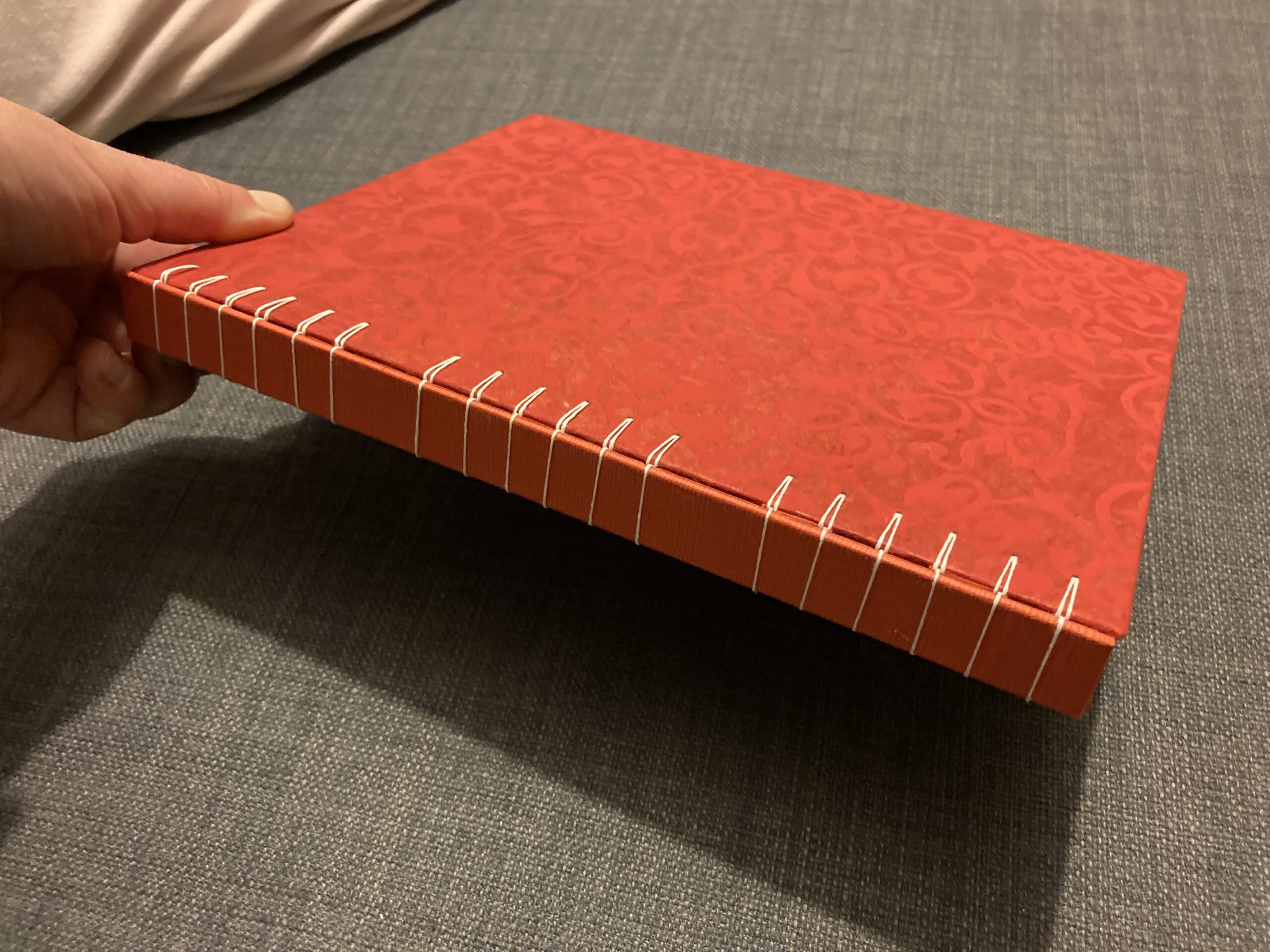 Je me suis donc mise à la recherche de cours de reliure. Dans mon esprit, deux ou trois ateliers suffiraient pour me débrouiller. En réalité, j’ai découvert tout un univers : les différents types de papier, les cartons, les fils, et surtout ces outils fascinants pour trouer, aplatir, plier, assembler. Un monde précis, patient, presque méditatif.